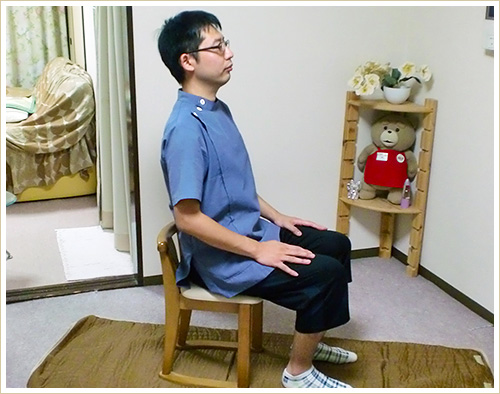 姿勢を正して椅子に座ります。