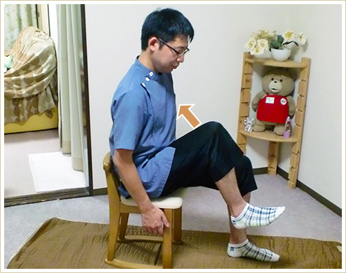 姿勢を正したまま、ゆっくりと膝を胸に近づけ、ゆっくりと戻します。