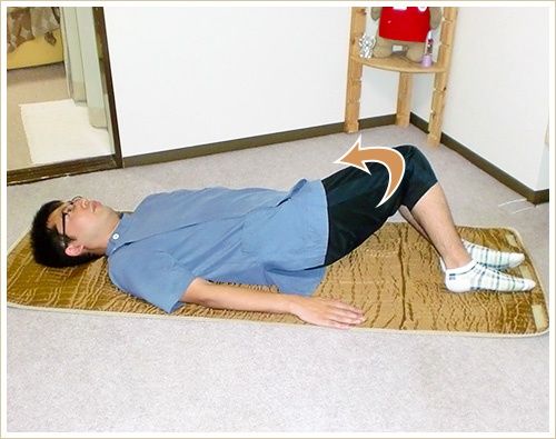 仰向けに寝て膝を立てます。