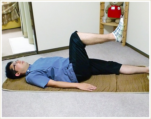 仰向けに寝て膝を90度に曲げます。